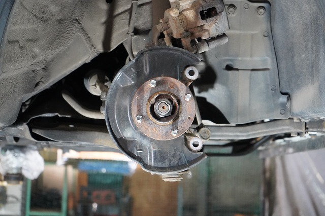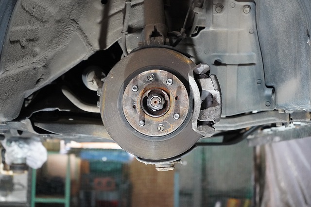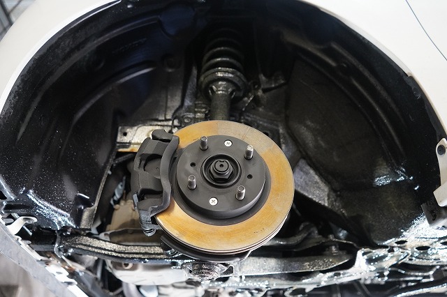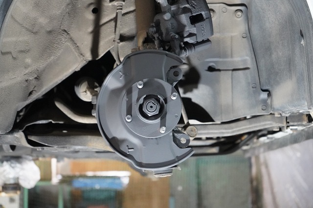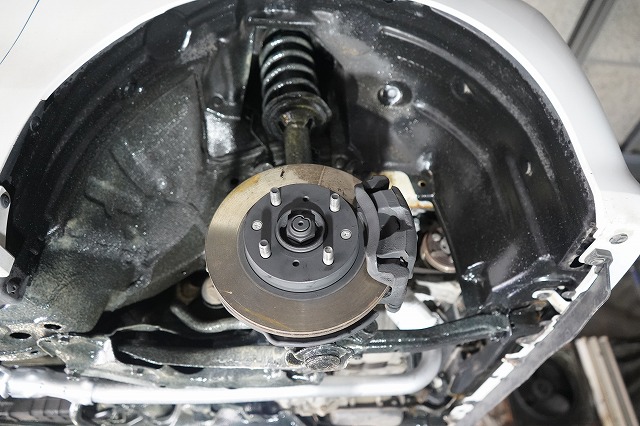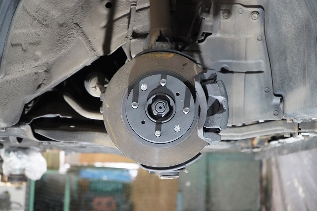 ブレーキキャリパー、ローターを外してブレーキのバックプレートにも耐熱塗装を施します